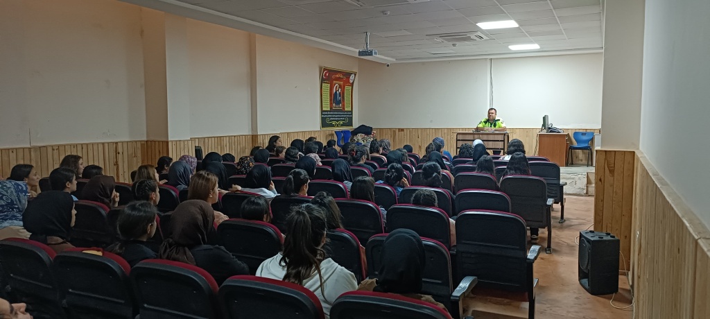 Kozan İlçe Emniyet müdürlüğü trafik trafik polislerinden İhsan TÜRKÖZ okulumuz öğrencilerine, trafik güvenliği konusunda temel kurallar, yayaların ve sürücülerin dikkat etmesi gereken hususlar ile motosiklet kullanımında koruyucu ekipmanların önemi konusunda seminer verdi.